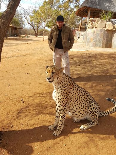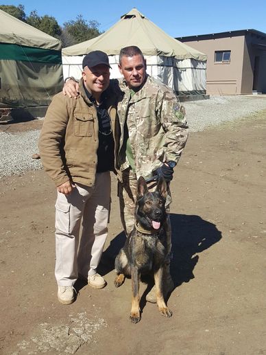 With heroic friends (man and dog) who track rhino and elephant poachers in Africa.